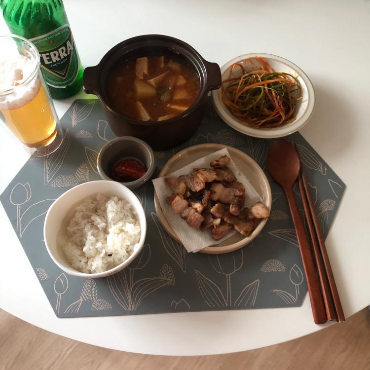 집에서 구워먹는 삼겹살과 된장찌개는 늘 최고!