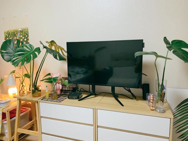 침실 티비 ㅎ 식물에 둘러싸여서 눈 정화하기