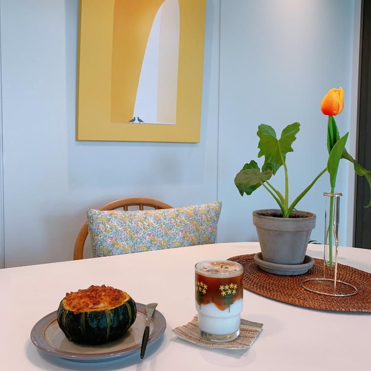 저희집 홈카페 테이블 입니다. 바닐라라떼 한잔하며 티타임 중이에요^^