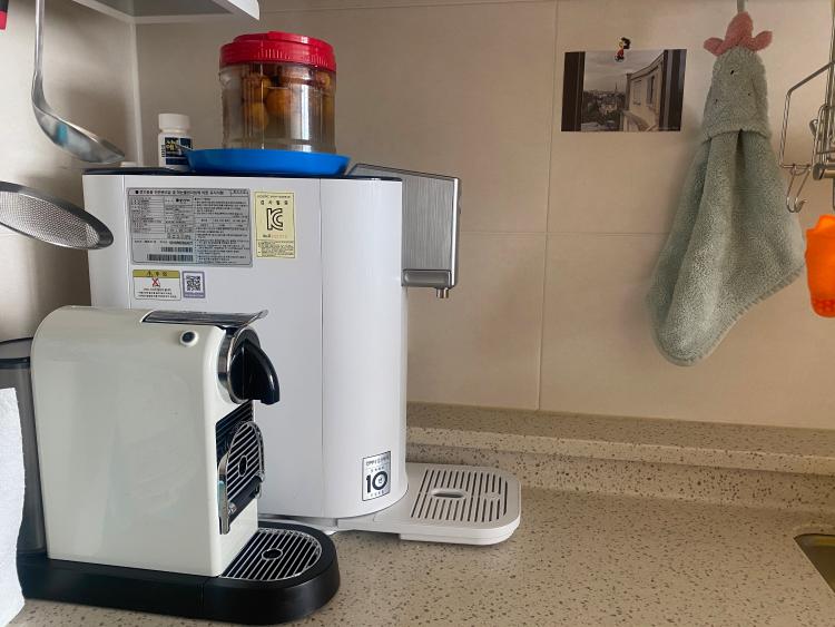 아이가 어린이집에서 담궈온 매실청을 주방공간이 작아 정수기 위에.올렸어요~ 얼른 먹어보고 싶네요 ㅎㅎ