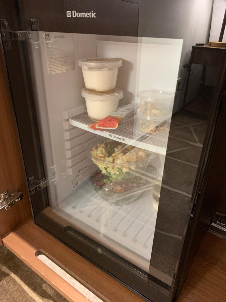 미니 냉장고 안에 샐러드 넣어놓았어요