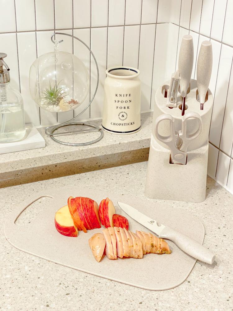 아침은 사과 반쪽과 닭가슴살을 먹어요.