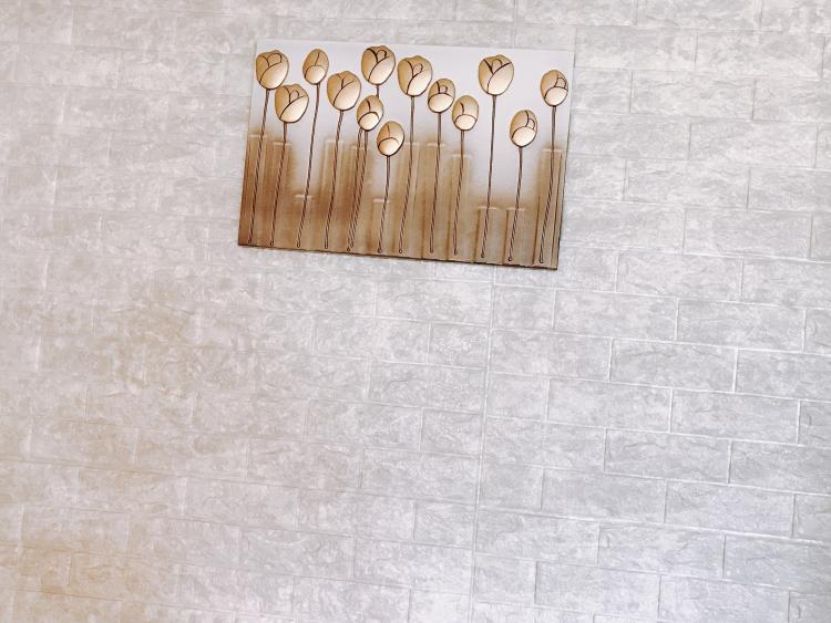 폼블럭으로 도배한 벽과 금색 액자로 포인트