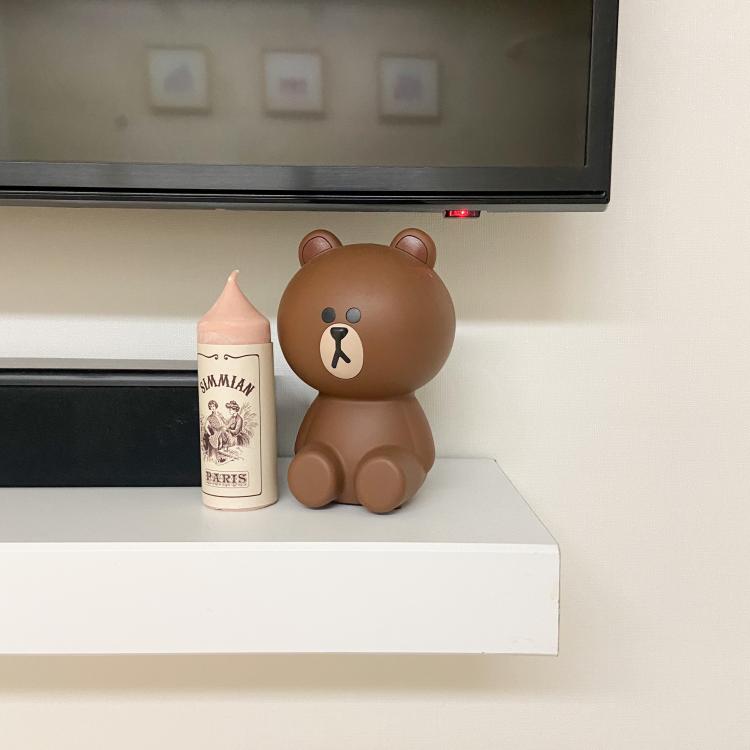 티비 아래 놓인 브라운 공기청정기와 캔들.