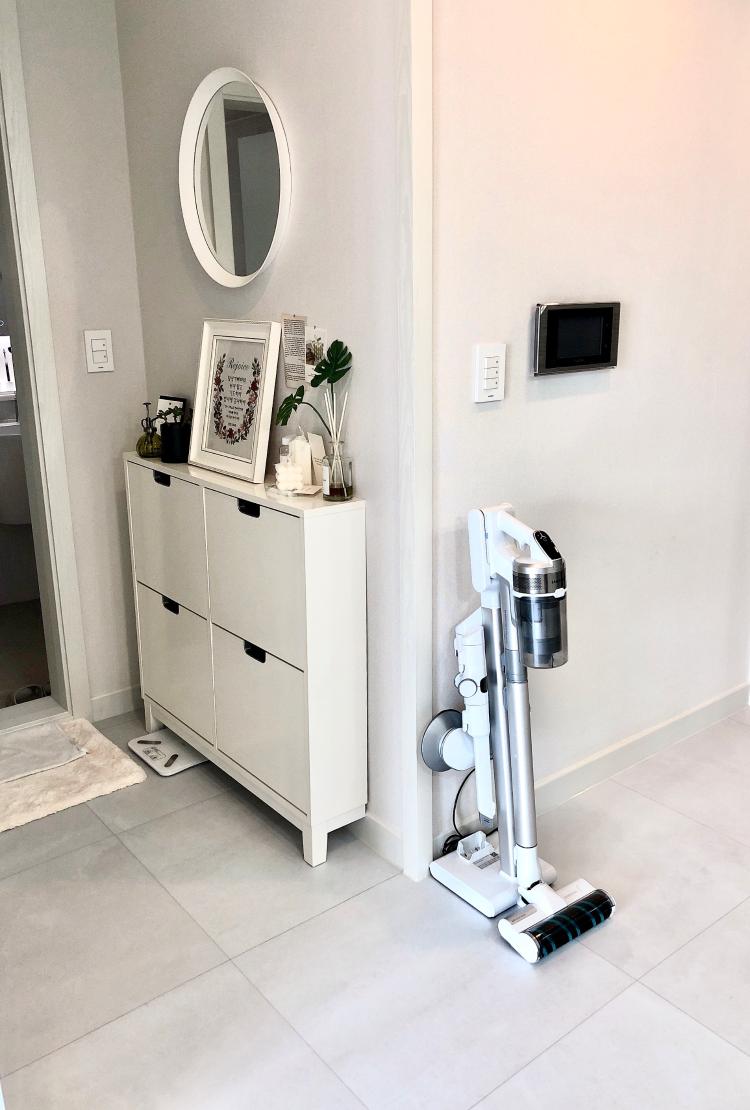 저희집 거실 복도에요. 장식장처럼 보이지만 수건이랑.욕실용품을 보관하는 수납장도 있구요. 다이어트 중이라 하루 한 번 같은 시간에 몸무게를 재느라 욕실 앞에 인바디 체중계도 숨겨(?) 놓았답니다^^ 그리고 수시로 청소를 해야해서 무선청소기도 이곳에 두었어요. 이렇게 보니 복도가 은근.중요한 공간이네요. 적어도 저희집에서는요^^