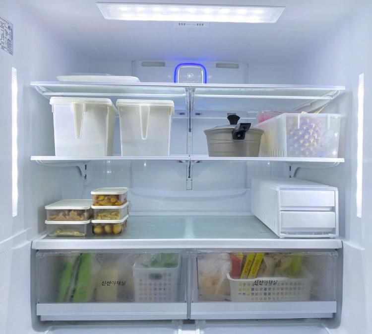 냉장고는 항상 깔끔하게 유지하려고 노력해서 정리 할게 딱히 없어서 너무 좋아요~~ ^^ 서랍장안에 있는 물건들 가지런하게 정리 했어요.