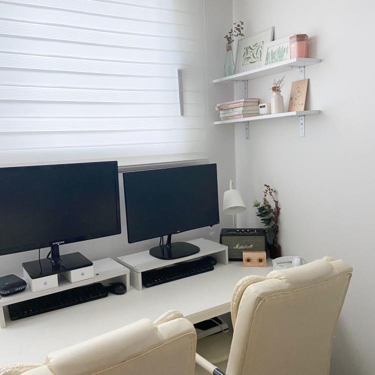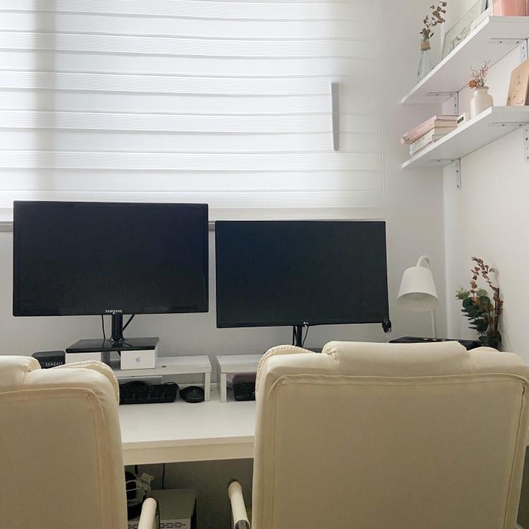 모니터가 나란히 붙어있는 부부의 서재에요 :)