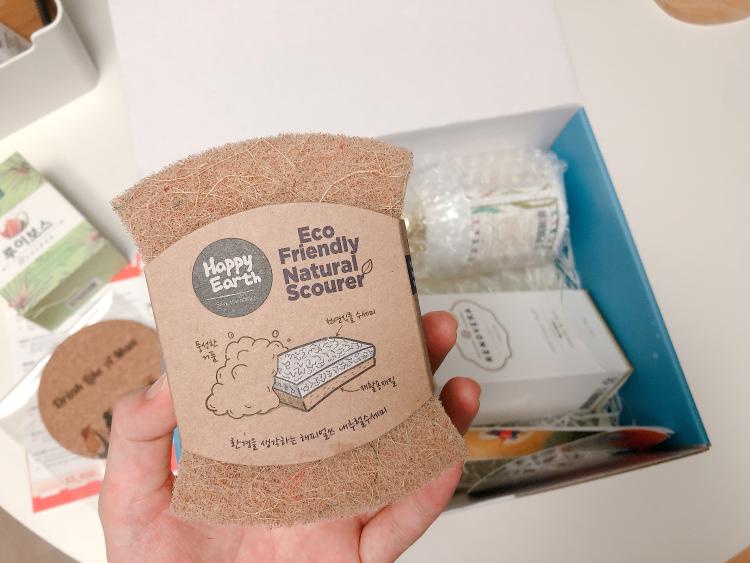 주방 수세미.친환경 수세미로 바꿔봤어요! 말랑한 재질이 아니라서 조금 뻣뻣한 감이 있지만 환경을 생각하면 이게 좋은.것 같아요 :)