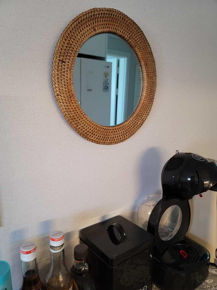 하이마트에서 구매한 라탄 거울 달아주니 밋밋했던 벽도 이뿌네요~