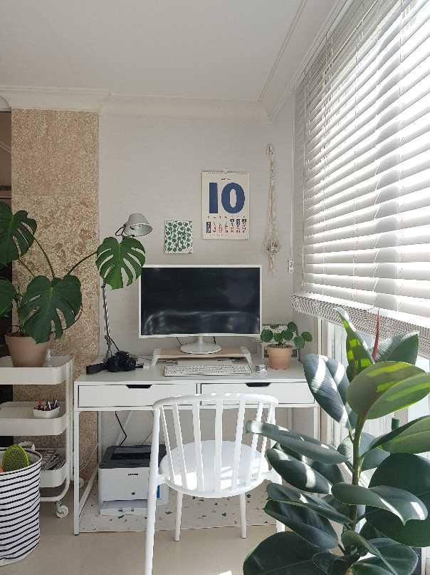 거실한켠에 저의 책상을두었어요. 엄마에게도 공간이 필요해요. 컴퓨터도하고 커피도 마시고 반려식물도 두었어요.