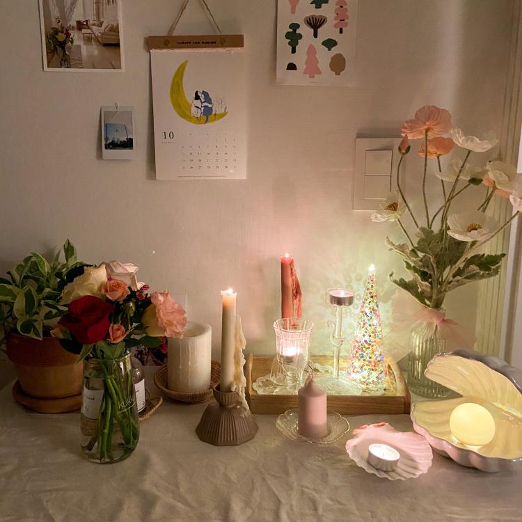 예쁜 걸 보면 마음도 힐링되고 몽글몽글해지나봐요. 소품을 너무 좋아해서 이것저것 모아둔 자리인데 이렇게 많이 두었는데도 늘 욕심이 많네요 ㅎㅎ