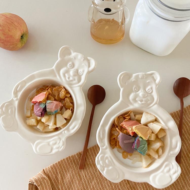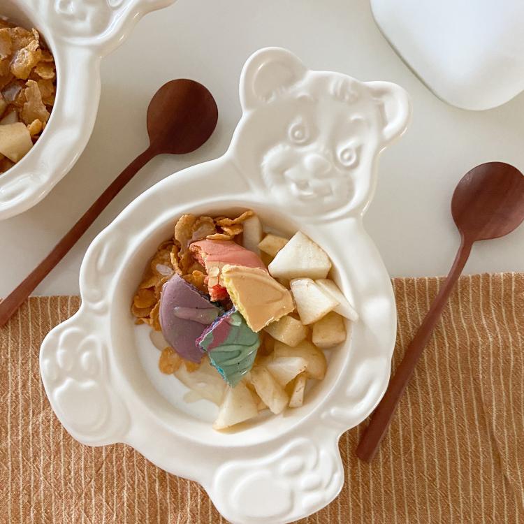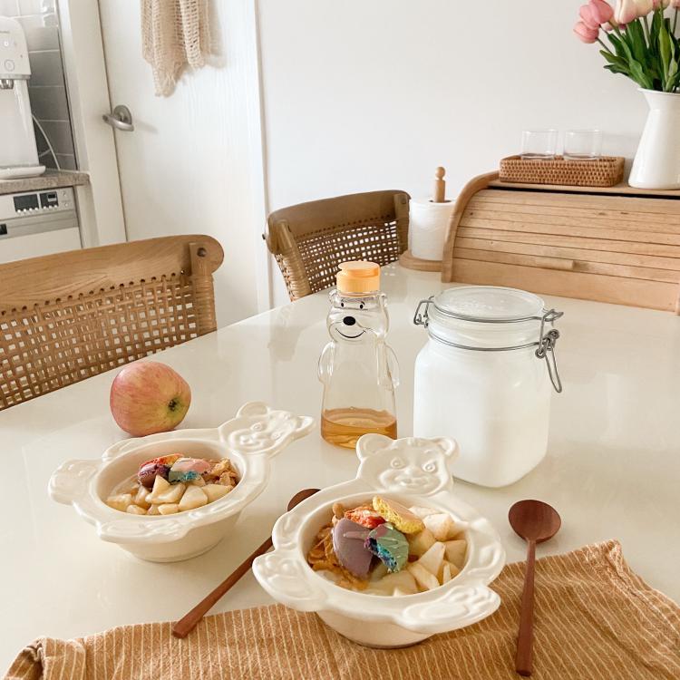 사과랑 씨리얼, 마카롱 꼬끄후레이크를 올리고 꿀을 뿌렸어요 ㅎㅎ