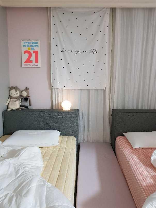 2021년 새 달력을 달았어요. 아이들 침대도 새로 옮기고 칭구도 바꿔주니 귀여운 자매방이 됐네요.