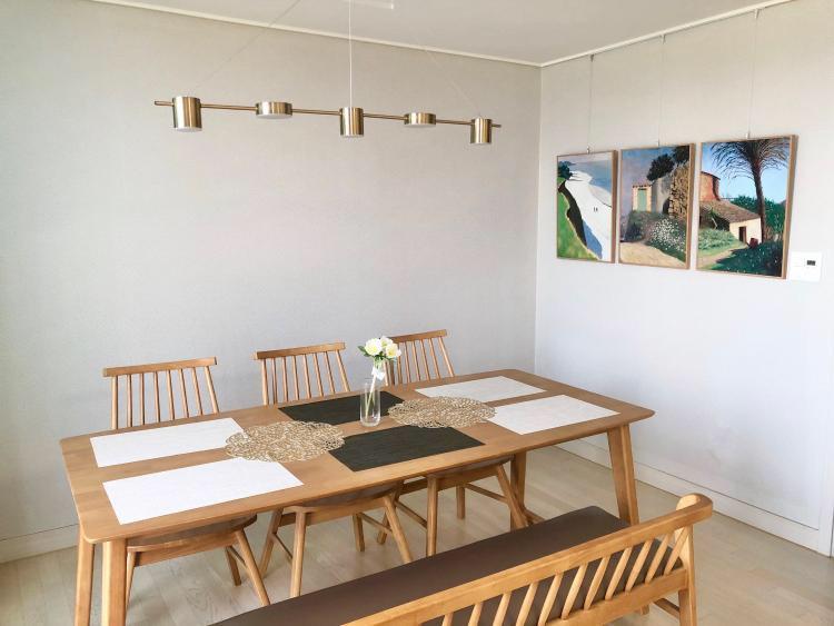 기존 원목 느낌을 살려 식탁을 놔뒀어요,
