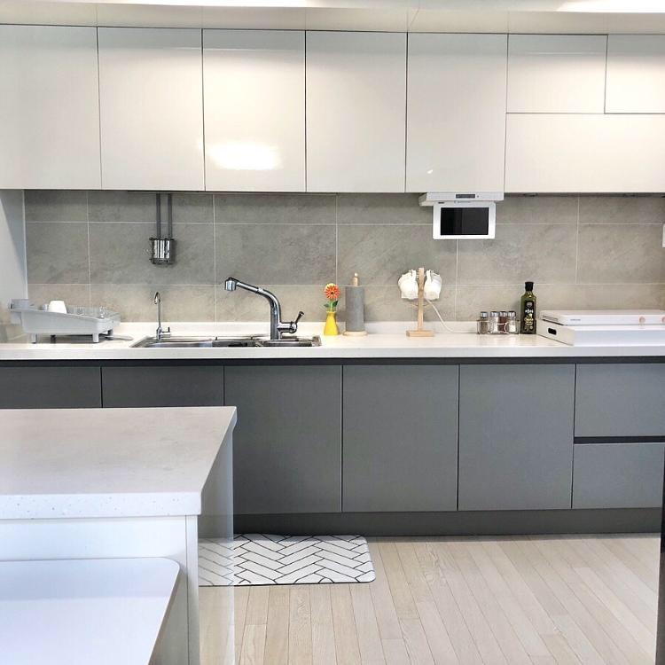 기존에 있던 싱크대를 그레이로 리모델링했어요:-)