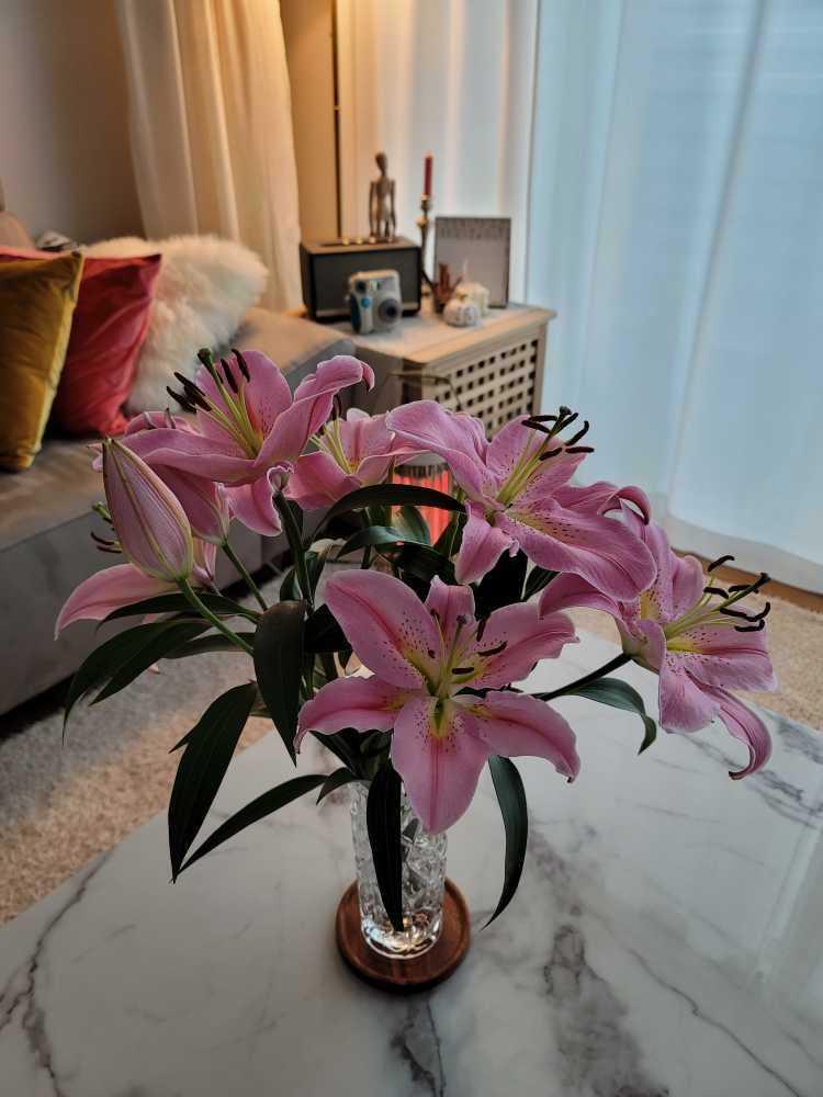 핑크 백합이 겨울 날씨를 잊게 해주네요^^