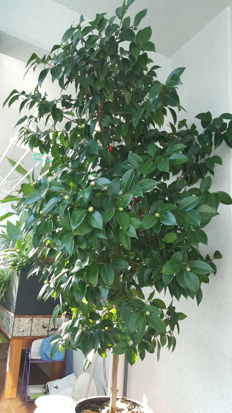 베란다에서 꽃 필 준비중인 동백