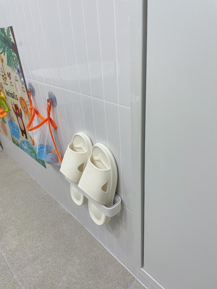 욕실화 걸이에 이렇게 걸어놓으면 물빠짐에 좋아요! 욕실.출입 시 발에 걸리적 거리지.않아서 좋네요^^