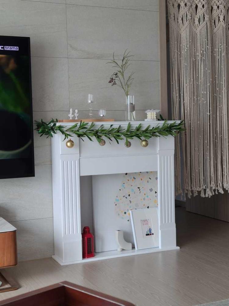 벽난로에 크리스마스 트리 꾸몄어요