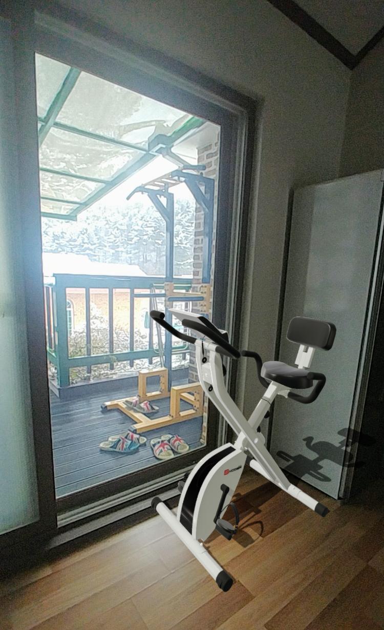 홈트레이닝을 위해 2층 베란다에 철봉을 설치했어요.다만 추운 겨울에는 도저히 힘들어서 집 안에서 홈트레이닝 할만한 기구도 필요했는데 찾다보니 엑사이더 브랜드의 실내자전거 발견~! 이렇게 철봉 옆에 배치하니 미니 헬스장 같아서 운동하고 싶은 기분도 들고 힘들땐 바깥 경치도 틈틈히 구경하면서 자전거 타면 되니 좋은 것 같아요 ㅎㅎ 요즘 운동량이 많이 줄었는데 단 30분이라도 다같이 홈트하면서 건강관리 하세용 모두들 화이팅^^!!