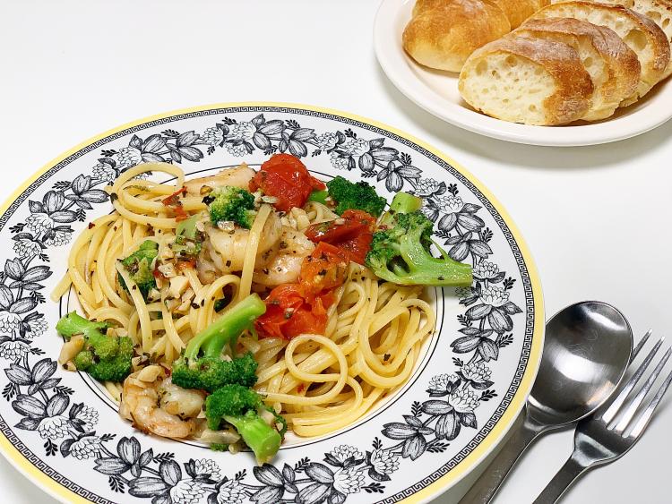 주말에 빵 구워서 파스타 만들어 같이 먹었어요💛