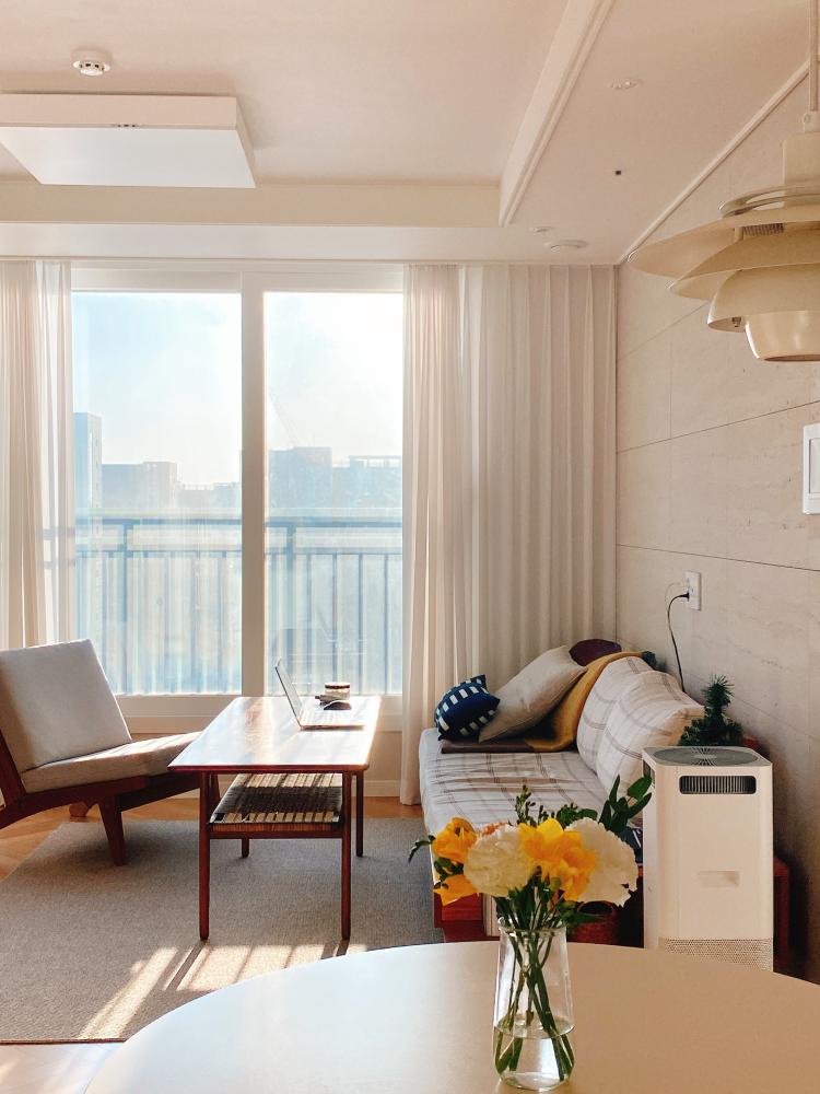 재택근무중에 길게 들어오는 햇빛에 행복한 시간