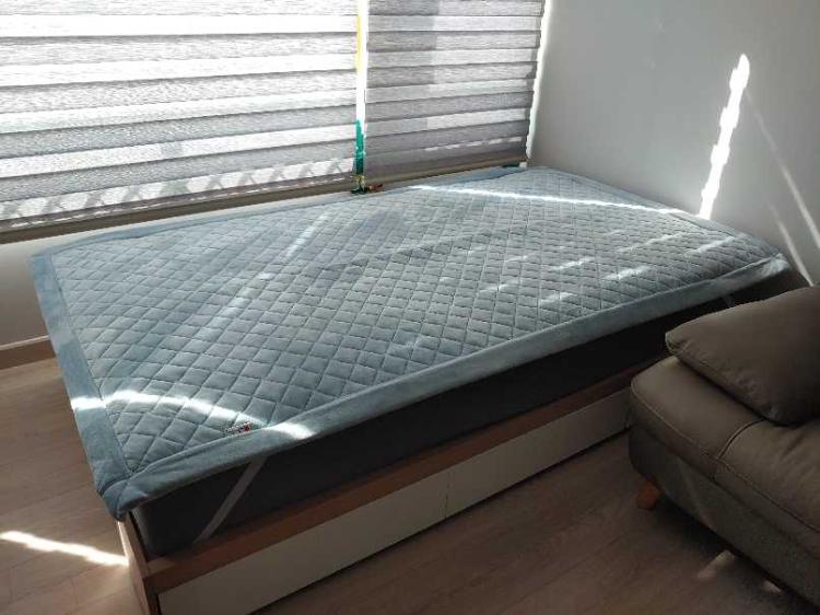 아빠가 다리를 다치셔서 거실에 침대 설치했네요