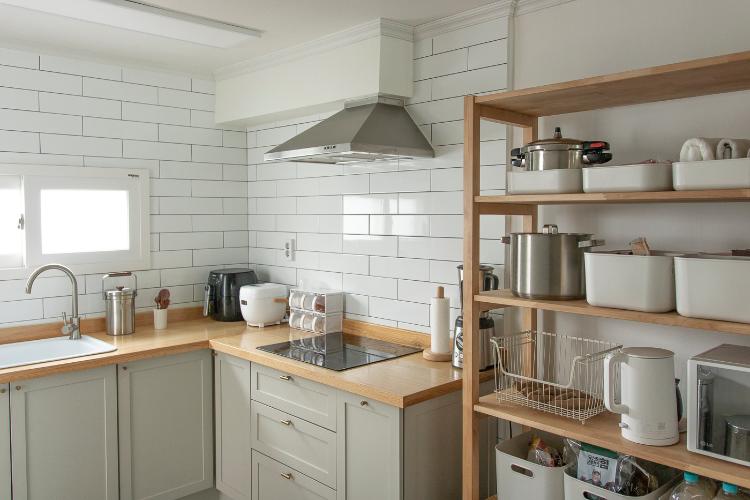 주방 정리하고 찍었어요. 따뜻한 공간입니다.