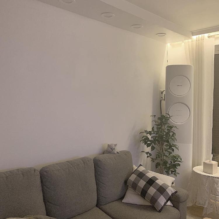 신혼집 거실 풍경- 이 땐 저희 고양이도 아기였을때라 정말 작죠? 소파 위에 빼꼼히🐾