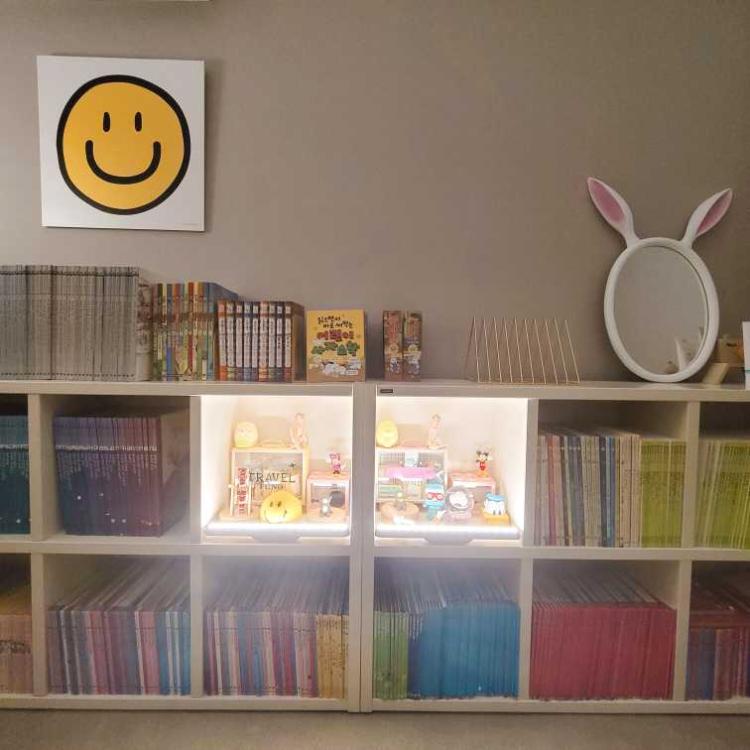 자매방 책장 한곳은 본인들의 보물창고로 만들어주니 아주 좋아합니다.
