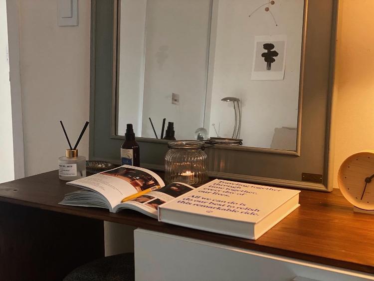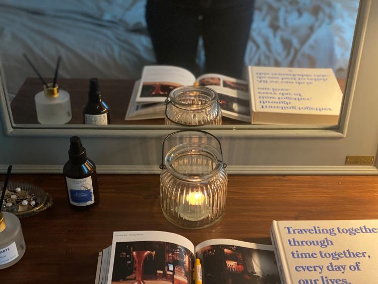 초를.켜고 침대정리하기