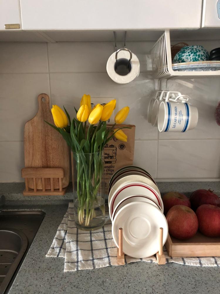 꽃으로 화사해진 주방