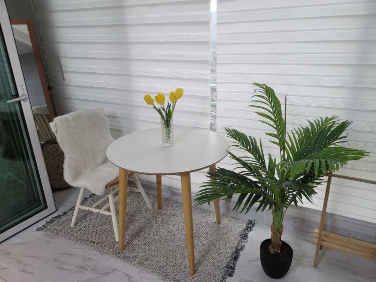 원형테이블 새로 구입했는데 화이트로 꾸민 베란다에 잘 어울리네요~