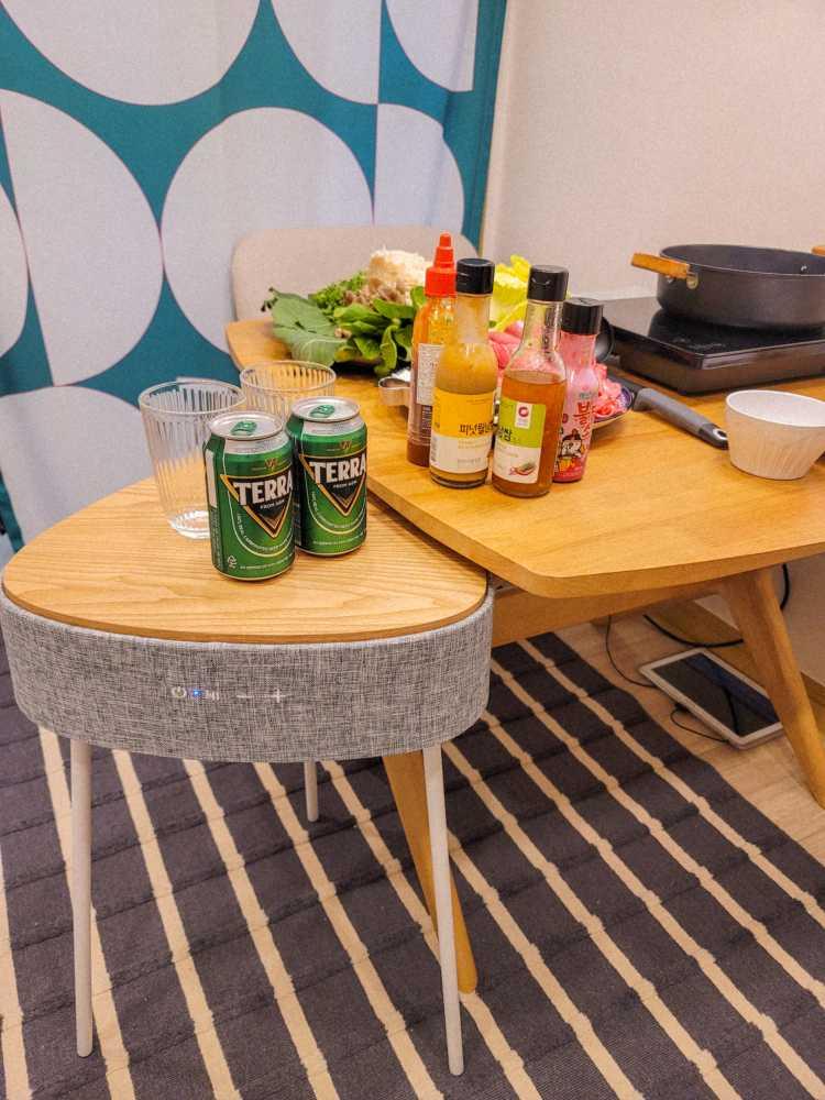 벨레스피커테이블을 보조 식탁으로 사용하고 있어요 ^^; 충전해두면 배터리로 사용 가능해서 집안 어디에든 놔둘 수 있어요 ㅎㅎ 음악 들으면서 식사하니 외식하는 느낌이네요!