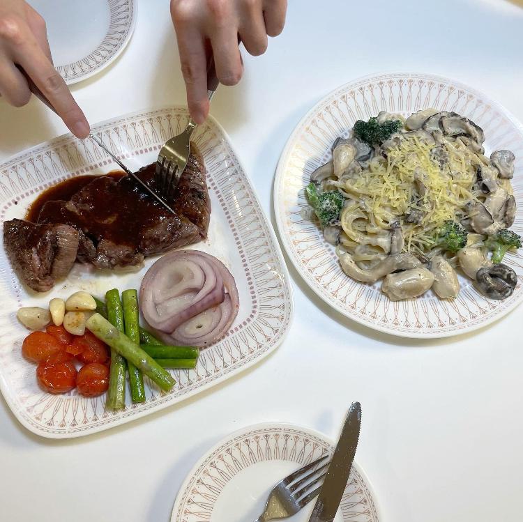 저녁으로 먹은 스테이크와 파스타에요~ 홈레스토랑 오픈!