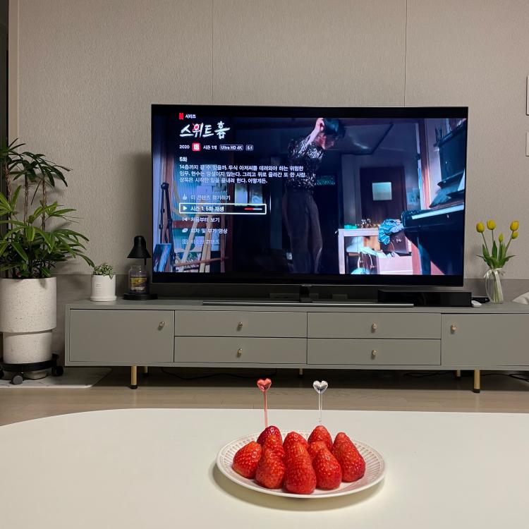 딸기 먹으며 스위트홈 보고 있어요ㅎㅎ