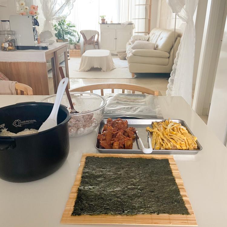 볶음김치, 참치샐러드, 지단만 넣고 초간단 김밥 만들기