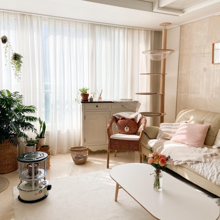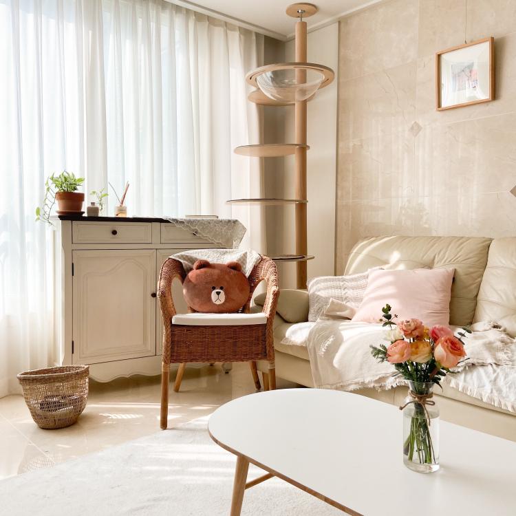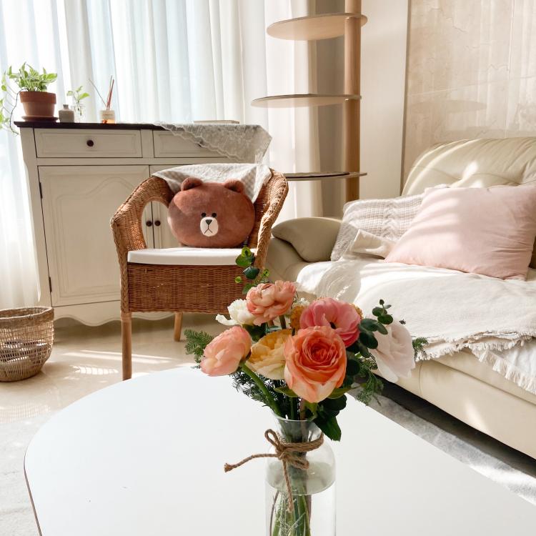 예쁜 꽃을 사다 꽃병에 꽂아주니 거실이 화사해졌어요!
