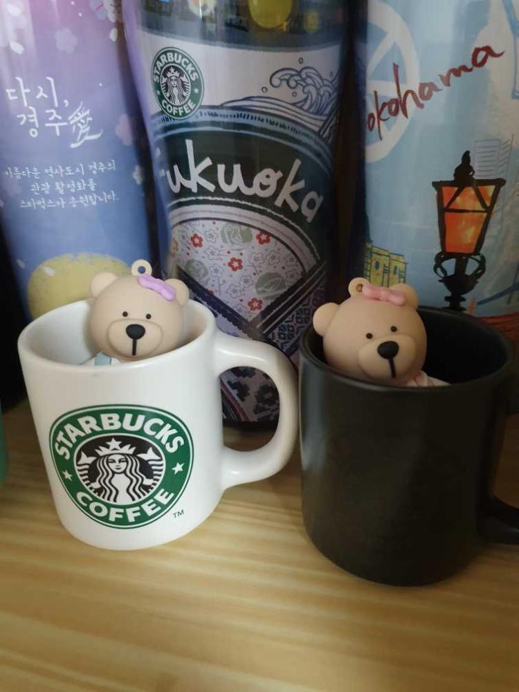 스벅좋아해서 책장 한칸에 몇개 진열하는데 데미머그에 스벅베어리키링 넣어봤어요 기분에 따라 요리조리 꺼내서 진열한답니다