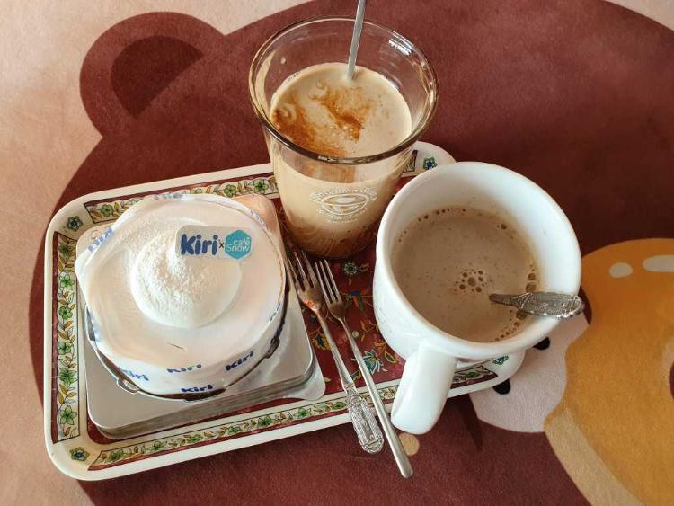 끼리크림치즈케이크 사서 저는 라떼 엄마는 토피넛라떼 따듯하게 만들어서 먹었어요