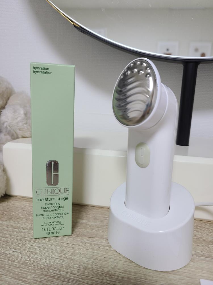 크리니크 클라리소닉 진동클렌저에요. 헤드는 사진처럼 마사지용으로 바꿀 수 있어서 세안할 땐 브러시를 끼웠다가 세안 후에 화장품바르고 마사지헤드로 바꿔서 흡수시키고 있어요. 벌써 3년째 애용하고 있는 아이에요^^