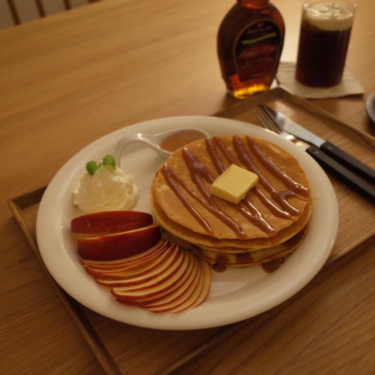 달달한 팬케이크에 슬라이스한 사과 곁들여 먹기! 스트레스 풀리는 맛❤️