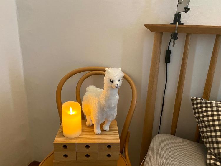 침대 옆에 LED캔들을 놓았어요.