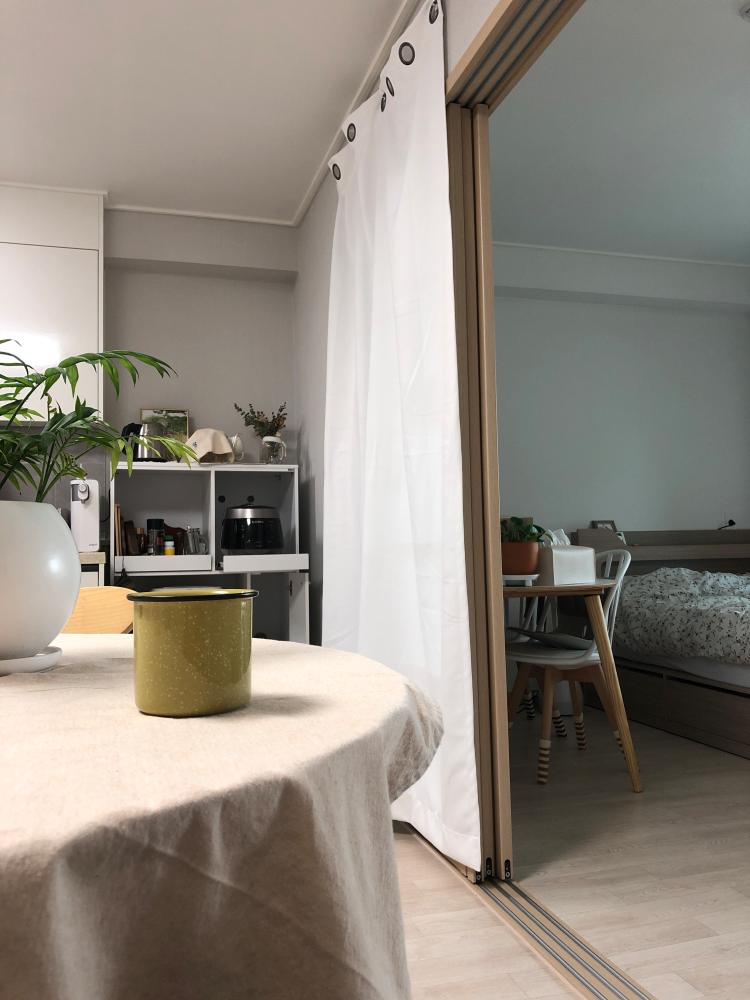 미닫이문이 거슬려서 꼭꼬핀으로 커텐을 달았어요