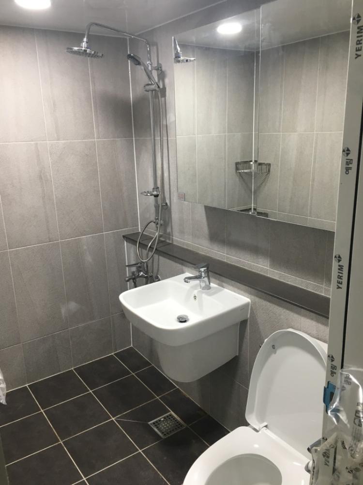 유일한 그레이 공간 화장실. 바닥을 어두운 색으로 하니 얼룩이 남아서 다음에는 밝은색으로 해볼까해요.