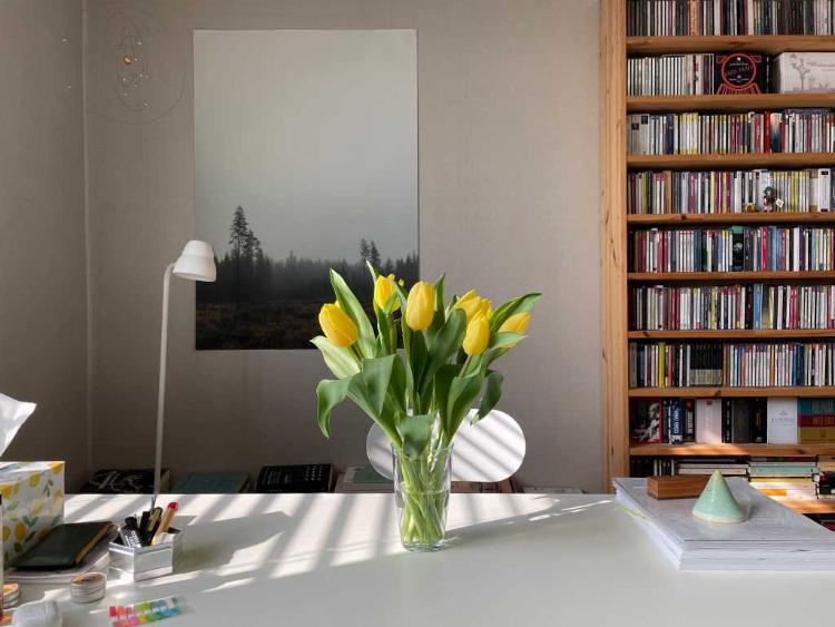 서재가 꽃으로 밝아졌어요