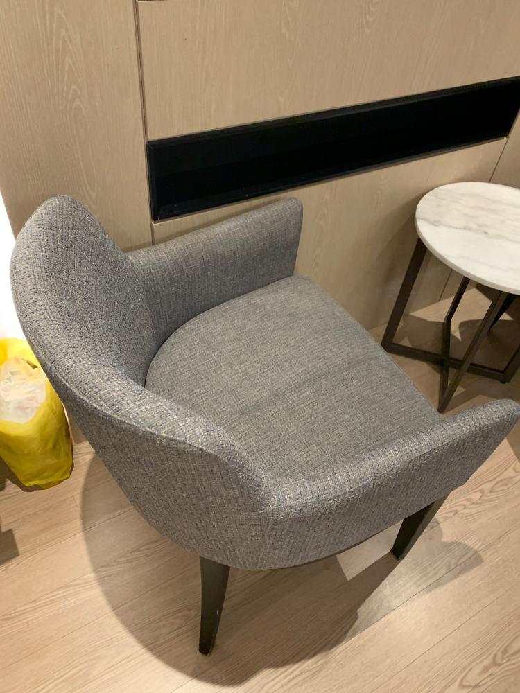 의자와 테이블을 침대 앞에 두었습니다