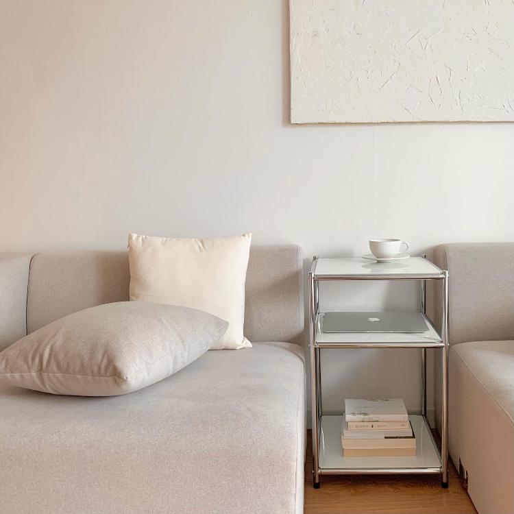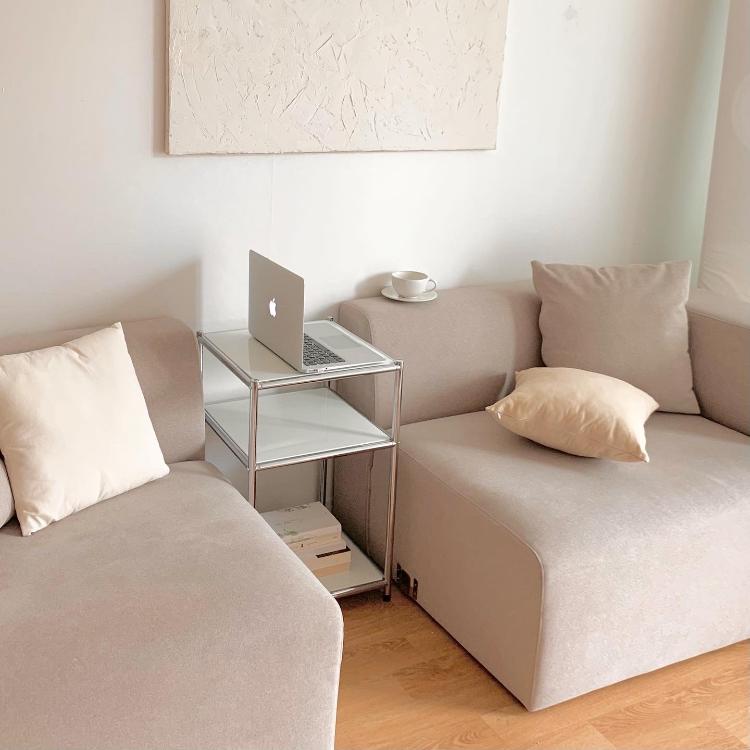 모듈 소파 사이에 모듈 선반 찰떡이에요