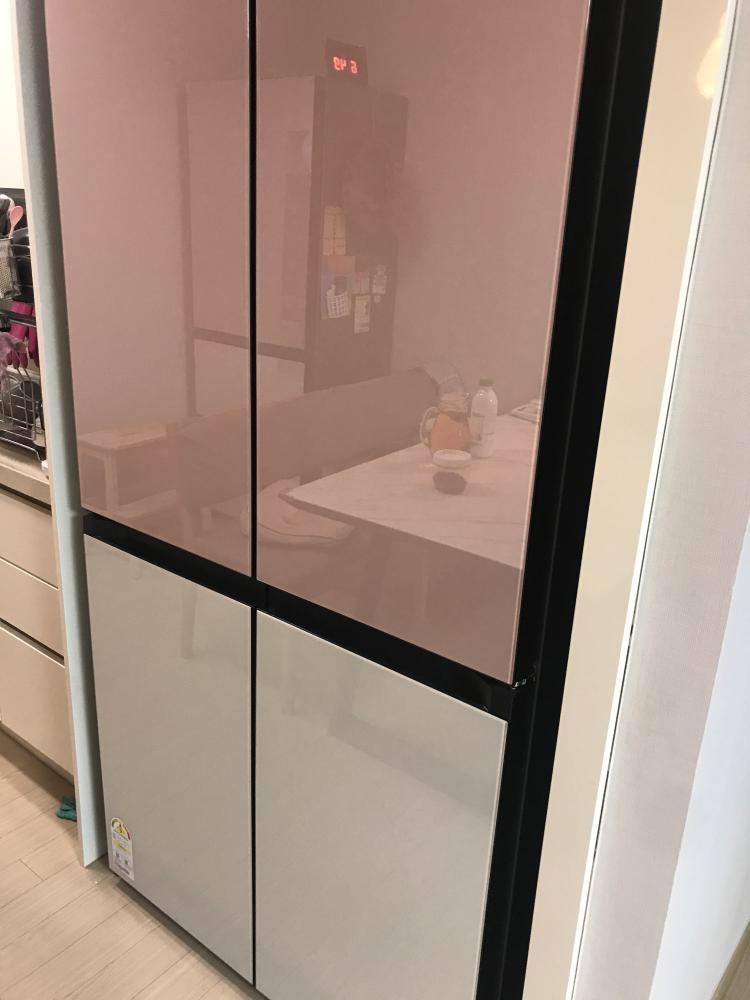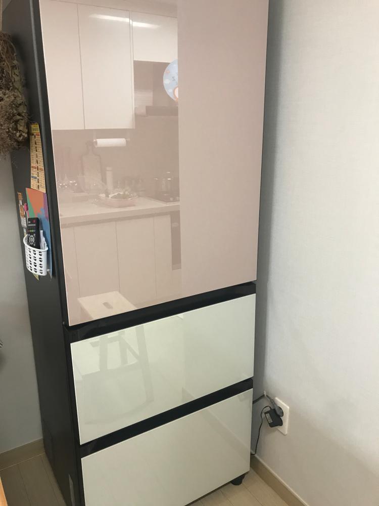 좁은 부엌 통로에 튀어나오지 않는 비스포크 키친핏이라 6인용 식탁 놓을수 있었구요~ 하이그로시 광택소재라 이뿌구 색을 화사하게 조합했어요~ 김치냉장고도 세트지만 공간 부족으로 따로 놓았네요. 분양받은 큰집으로 이사하면 가구처럼 일렬 디스플레이하면 멋지겠죠~