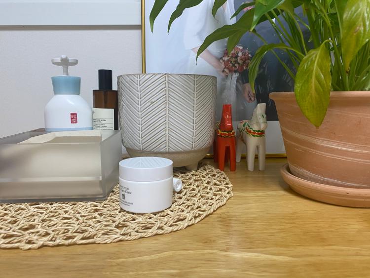 침대 옆 원목 수납장 위에 아이템들이에요~!